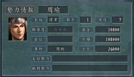 一心筹谋着二分天下计的周瑜辞世之后,孙权带领下的江东集团算是彻底由攻转守了,明明体量是蜀汉的两倍,胆量却不及蜀汉的半分。想要让周瑜称霸的,也来玩百家姓章节吧,建业是周瑜的基地,麾下还有周泰、周鲂等上佳的人才。