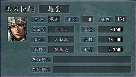 想要看着赵云在游戏里面当老大,强烈推荐玩五虎将争霸章节。这里面的赵云除了占据肥沃的巴蜀地区,还有诸葛亮给他做军师!
