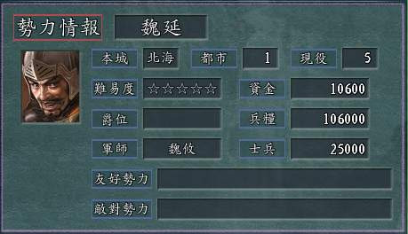 三国志11的百家姓章节,魏延带领全部魏姓将领在北海开局,虽然麾下基本是混子,不过总比他在诸葛亮病逝蜀军撤退时的众叛亲离要强很多。